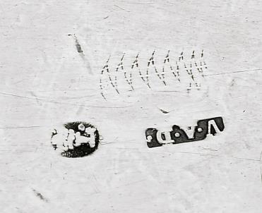 - decoração gravada, marca de ensaiador de Lisboa (1822-1843), marca de ourives de Victor Acto Diniz (1822-1879)