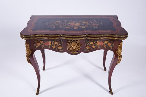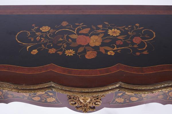 - marchetaria de mogno, raiz de nogueira, madeira ebanizada e diversas madeiras coloridas "Flores"