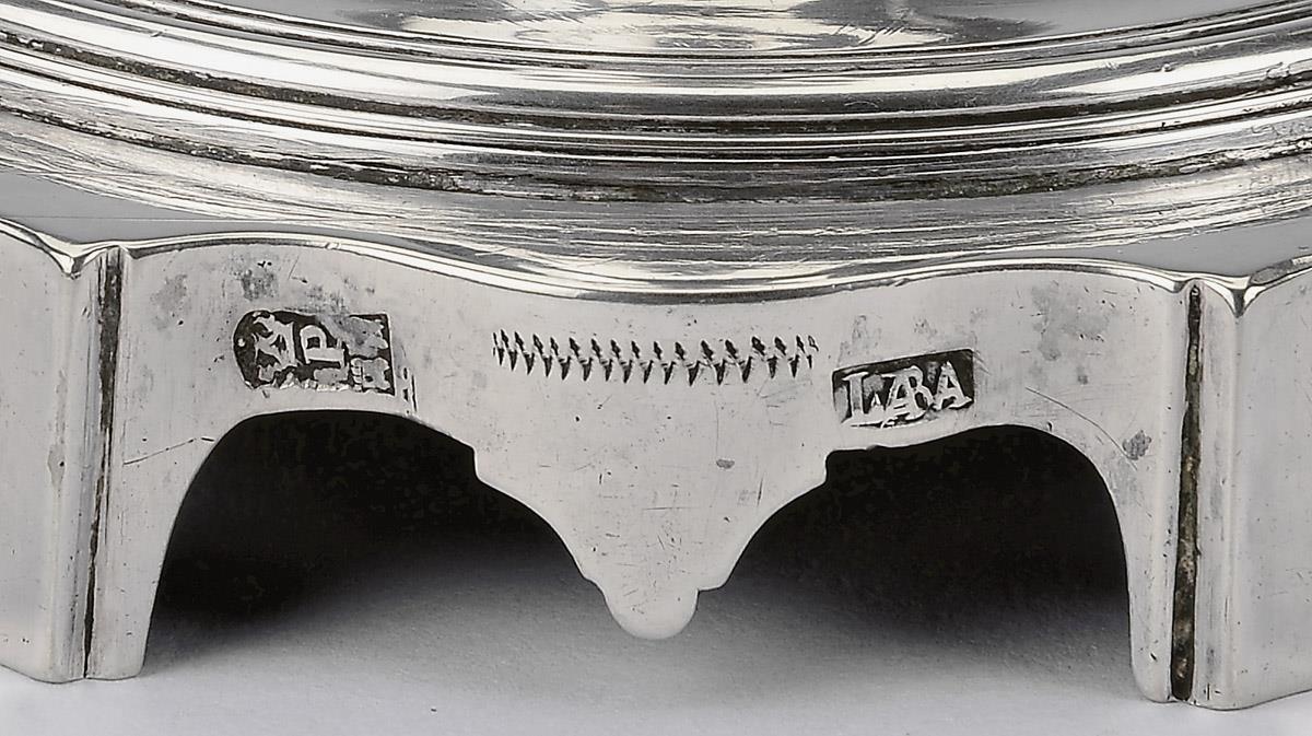vd. ALMEIDA, Fernando Moitinho de - "Inventário de Marcas de Pratas Portuguesas e Brasileiras (Século XV e 1887)", IN-CM, 1995, P23 e P426; e SOUSA, Gonçalo de Vasconcelos e - "Dicionário de ourives e lavrantes da prata do Porto, 1750-1825", Civilização E