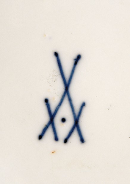decoração policromada ao gosto da porcelana de Meissen "Grinaldas de flores, ave e borboleta"