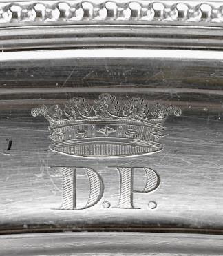 decoração gravada com as iniciais D.P. (Duque de Palmela), sob coronel de duque