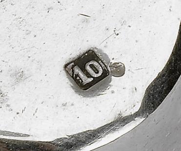 decoração gravada, marca do título de dez dinheiros do Rio de Janeiro (1830-1889), marca de ourives R/JS/F
