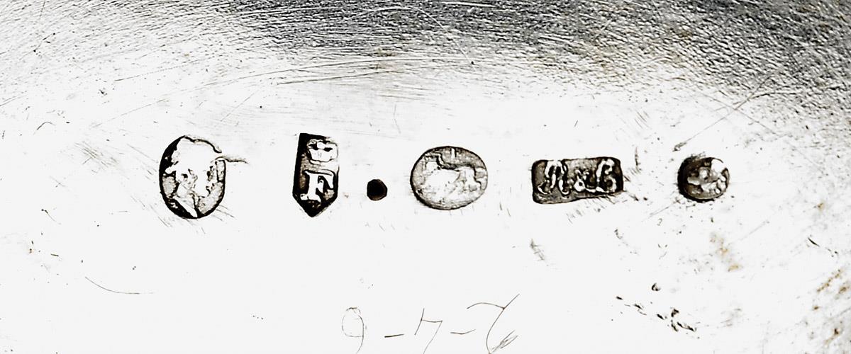 decoração relevada nas asas "Leões alados" e gravada "Frisos com grifos, harpas e folhagens", marca da cidade de Berna (c. 1820), marca de ourives de Georg Adam Rehfuss