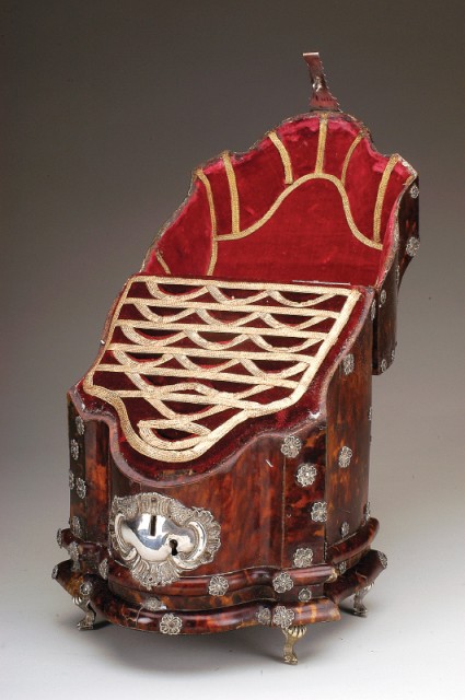 aplicações e pés de "Garra e bola" em prata cinzelada, interior com veludo e galões
