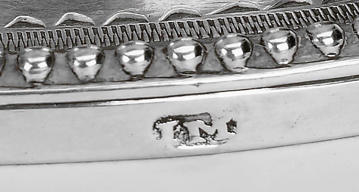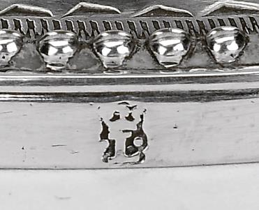 decoração gravada "Grinaldas de flores", marca de ensaiador de Lisboa (1770-1790), marca de ourives de José Maria (1720-1804)