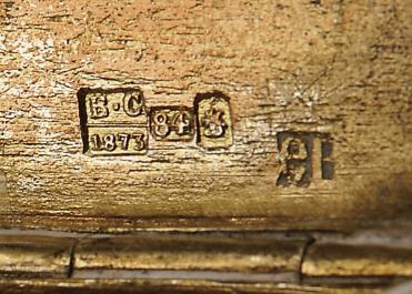 decoração a niello, marca de teor de 84 zlotnicks, marca do ensaiador B.C. da cidade de Moscovo (1873), marca de ourives EB