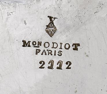 decoração relevada e gravada, pega facetada em marfim, marcas de garantia de Paris, marca da casa ODIOT (1906-1956)
