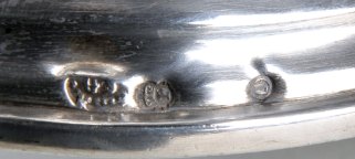 fuste em vulto-perfeito "Egípcia em cima de coluna", marca de ensaiador do Porto (1881-1886), marca de ourives Guilherme Soares (1877-1886)