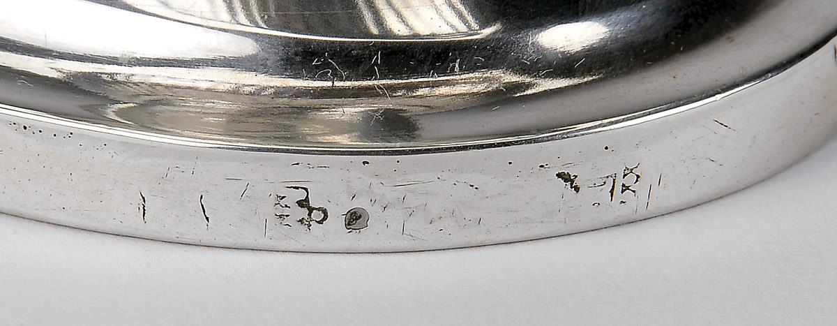 decoração canelada e gravada "Grinaldas de flores", marca de ensaiador do Porto (1792-1803), marca de ourives de Manuel Joaquim Moreira (1768-1810)