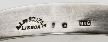 decoração relevada "Flores", aro em prata, contraste Águia de Lisboa (1938-1984), marca de ourives de Augusto Luís de Sousa Lda. (1930), marca da ourivesaria A. L. SOUZA, Lda - Lisboa