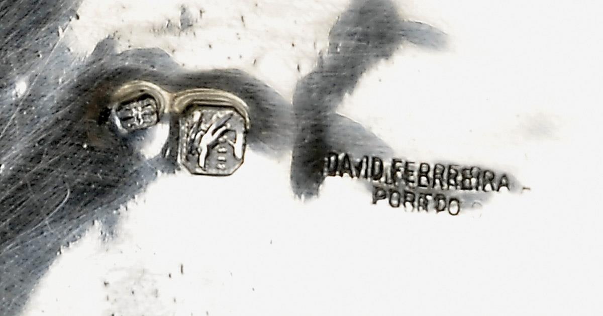 aplicação de perdas duras, contraste Águia do Porto (1938-1984), marca de ourives de Delmar Gomes Pinheiro (1945-1981), marca da casa DAVID FERREIRA - PORTO