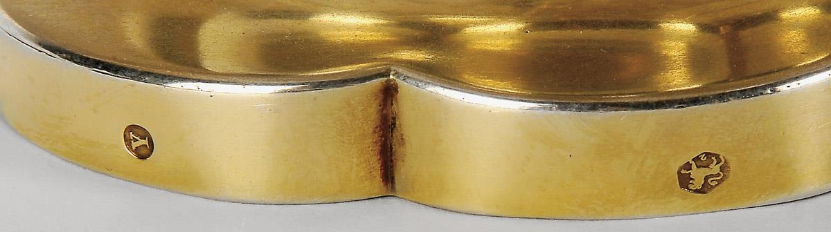pé em prata dourada, marca de garantia (1814-1853) e de teor de 835 milésimos