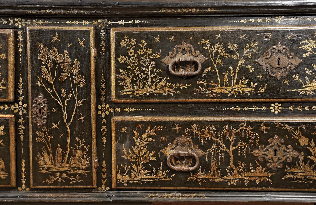 madeira acharoada a ouro "Chinoiseries" sobre fundo negro
