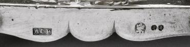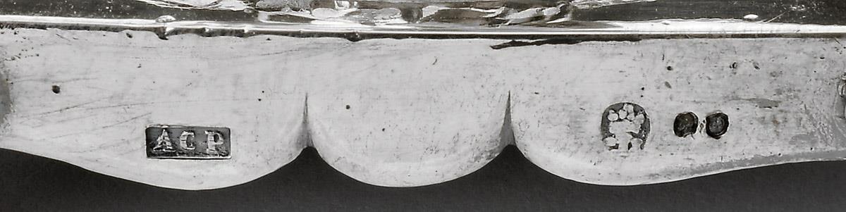 decoração relevada e monogramada "Flores", marcas de ensaiador de Lisboa (1843-1870), marcas de ourives de António Clemente Pinto (1828-1879)