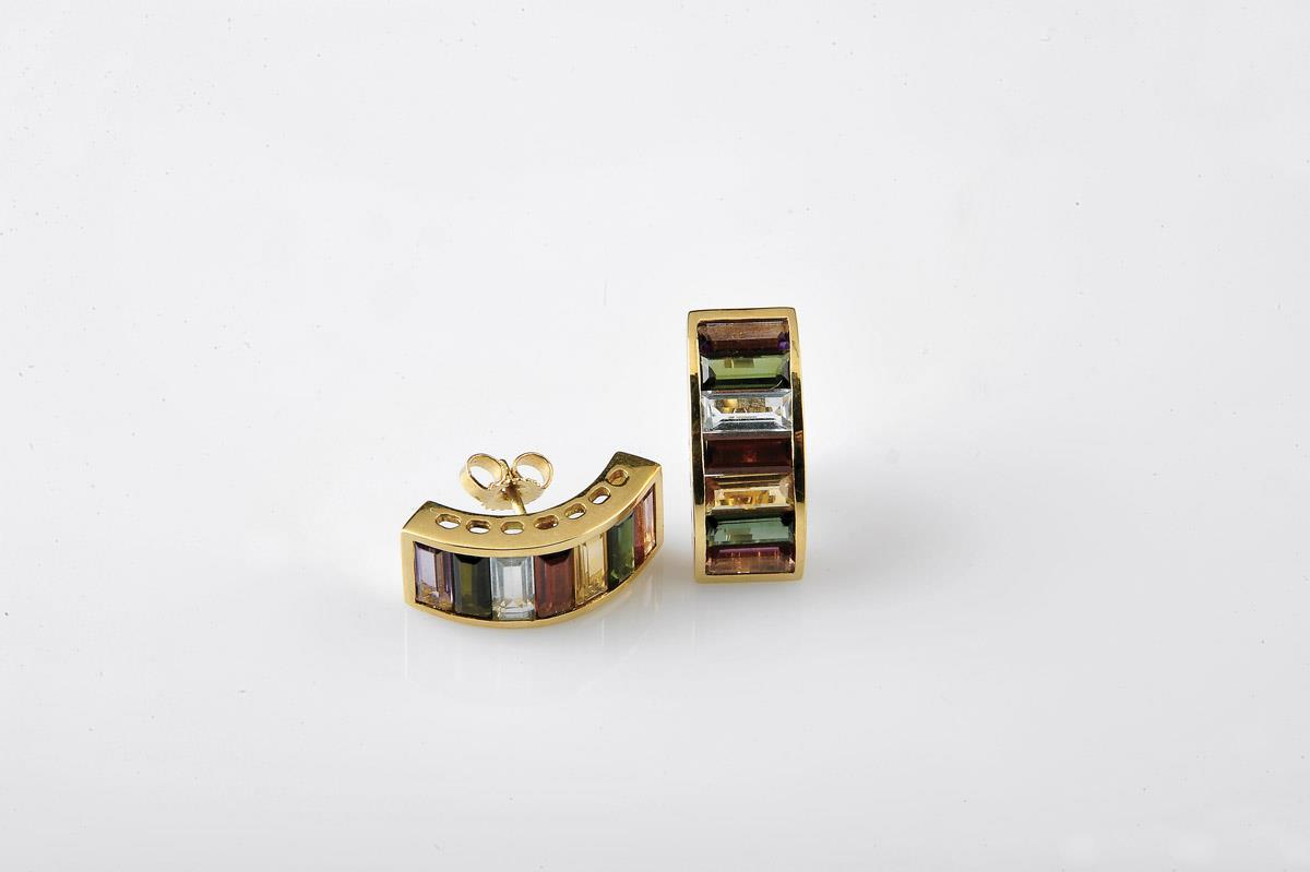 cravejado com ametistas, turmalinas, topázios, granadas e citrinos em talhe baguette