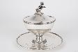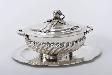 Dim. - (terrina) 19,5 x 33,5 x 22,5 cm; (base) 41 x 32,5 cm; Peso - 3.581 g.