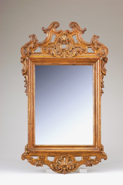 Espelho D. José/D. Maria moldura em madeira entalhada e dourada português séc. XVIII pequenos defeitos Dimensões (altura x comprimento x largura) - 81 x 47 cm