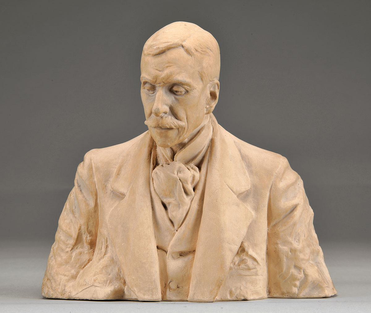 ANTÓNIO TEIXEIRA LOPES - 1866-1942 "Busto de Eça de Queiroz" escultura em terracota assinado, marcado E. A. TEIXEIRA LOPES - GAYA Dimensões (altura x comprimento x largura) - 18 cm