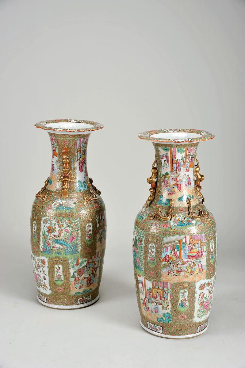 Par de jarrões porcelana da China decoração policromada "Mandarim Cantão" reinado Tongzhi (1862-1874) Dimensões (altura x comprimento x largura) - 90 cm
