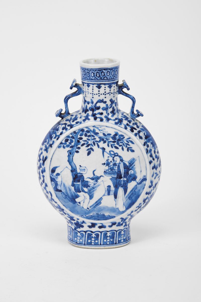 A Pilgrim Bottle, Chinese export porcelain, blue decoration "Oriental Figures", Guangxu period (1875-1908) Dimensões (altura x comprimento x largura) - 25,5 cm