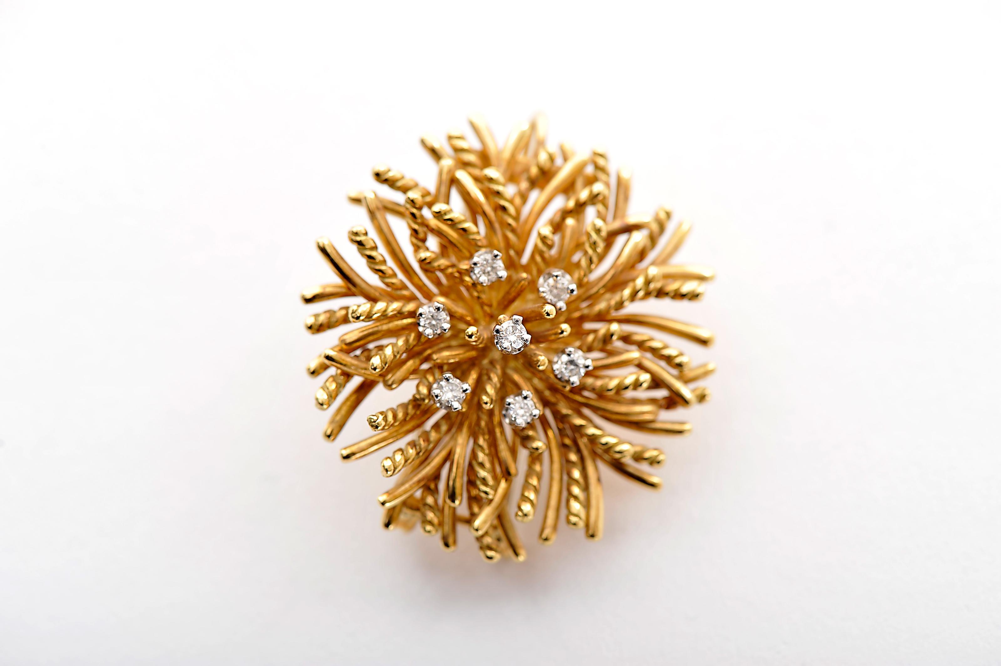 A Brooch/Pendant TIFFANY & Cº 750/1000 gold and 950/1000 platinum set with 7 brilliant cut diamonds with approximate weight of 0.40 ct North-American 20th C. (the 60s) signs of use marked TIFFANY & Cº 750/950, without Portuguese marks, pursuant to Decreto-Lei No. 120/2017, of 15 September - art. 2, paragraph 2(c) Dimensões (altura x comprimento x largura) - 4 cm; Peso - 29,3 g. Notes: Provenance: Jewelry collection of a soprano opera singer of the São Carlos National Opera House, Lisbon.