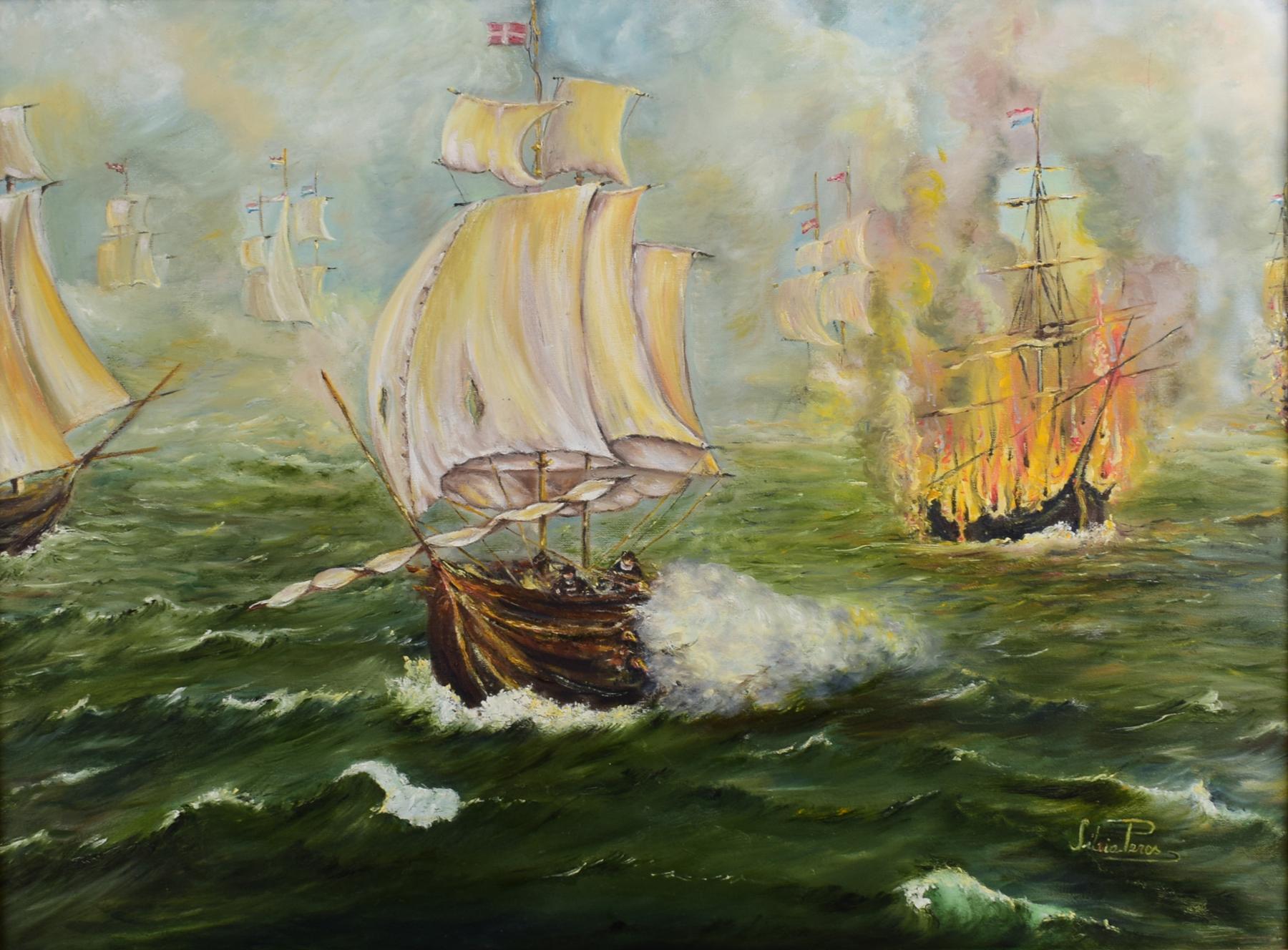 SÍLVIA PERES - SÉC. XX Sem título - incêndio óleo sobre tela Português assinado e datado no verso de 1997 Dimensões (altura x comprimento x largura) - 60 x 81 cm