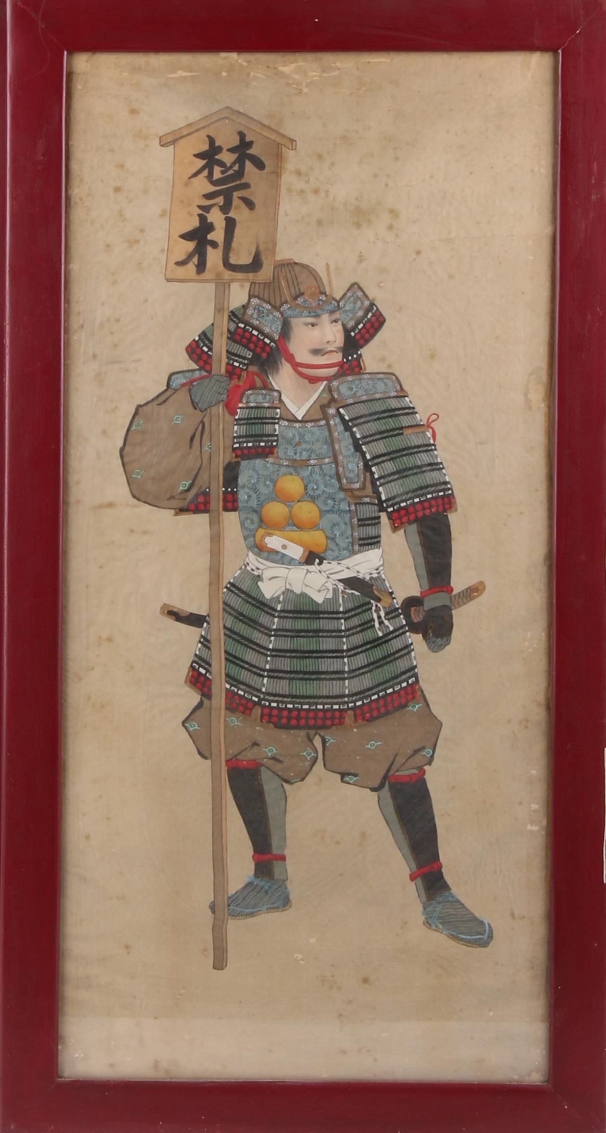 Samurai e senhora par de guaches sobre papel japoneses - período Meiji (1868-1912) pequenas faltas, defeitos e manchas no papel Dimensões (altura x comprimento x largura) - 75 x 36 cm