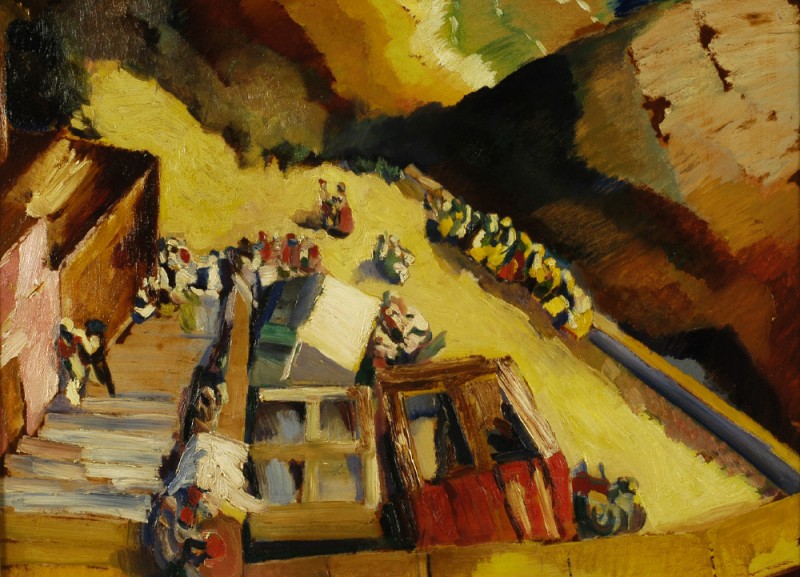 ANTÓNIO SOARES - 1894-1978 "Tarde de Arraial na Senhora da Peninha" óleo sobre cartão assinado Dimensões (altura x comprimento x largura) - 49 x 65 cm Notas: a presente obra integrou a "Sexta Exposição Individual de Pintura", Janeiro de 1932, Lisboa, Salão do «Século», conforme inscrição manuscrita pelo autor no verso.O Santuário de Nossa Senhora da Peninha situa-se na Serra de Sintra, no actual Parque Natural de Sintra-Cascais, e terá tido uma construção original do reinado de D. João III, sendo a actual do reinado de D. Pedro II, com intervenções posteriores, quer no reinado de seu filho, D. João V, quer já no século XX (cerca de 1918) por Carvalho Monteiro.