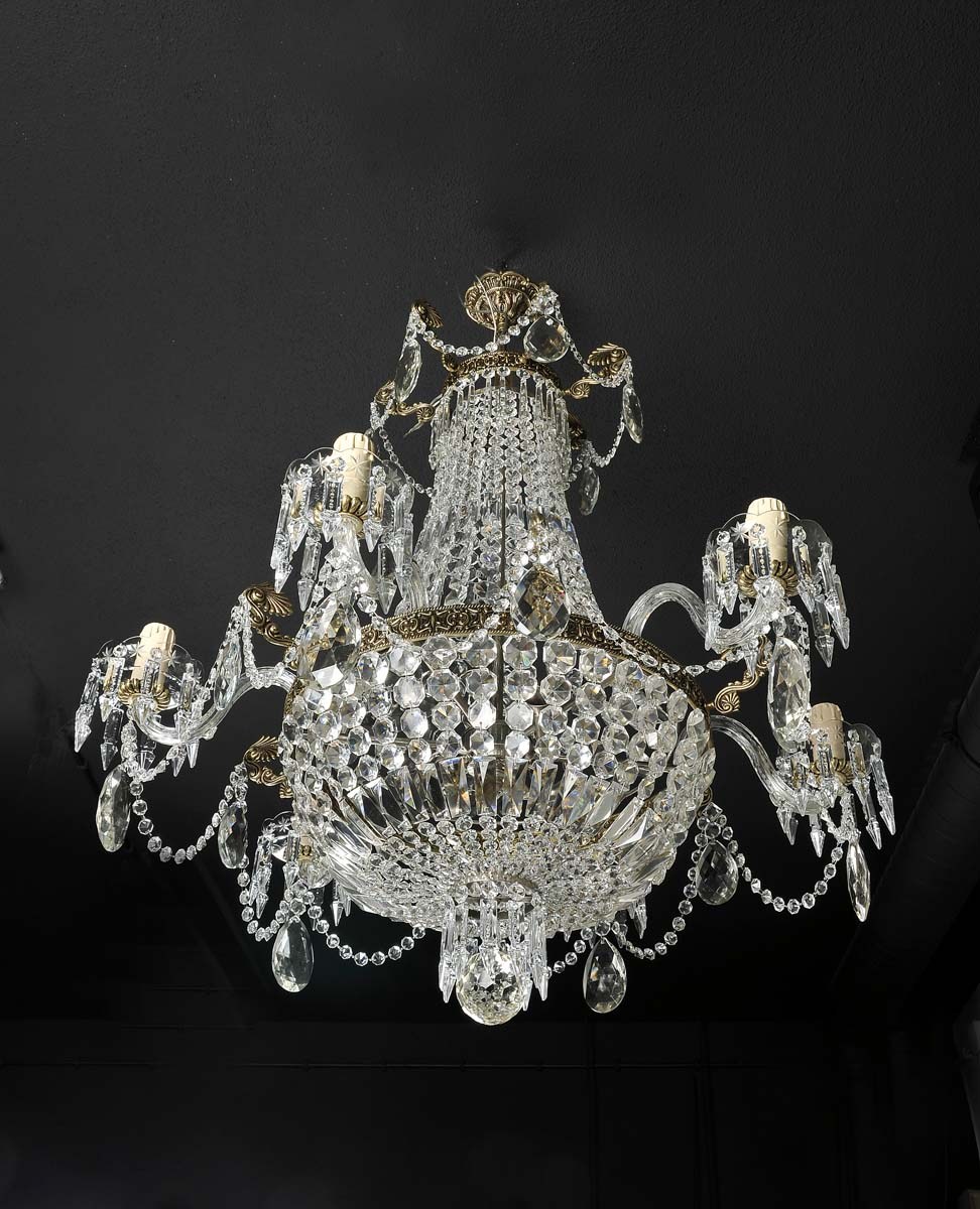 Lustre vidro com pingentes aros em bronze relevado português séc. XX (1ª metade) Dimensões (altura x comprimento x largura) - 110 cm
