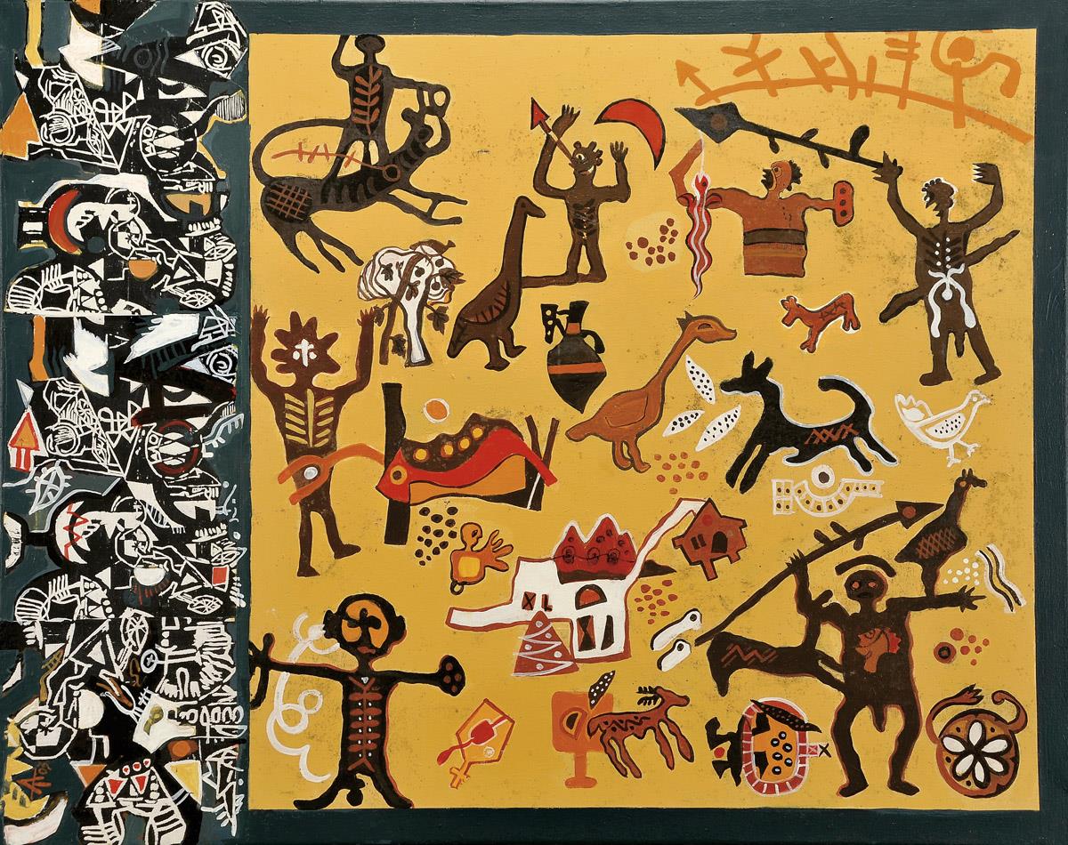 "Sem título" acrílico sobre tela manchas de humidade, pequeno furo na tela assinado com iniciais AT, datado de 2003 Dimensões (altura x comprimento x largura) - 73 x 92 cm