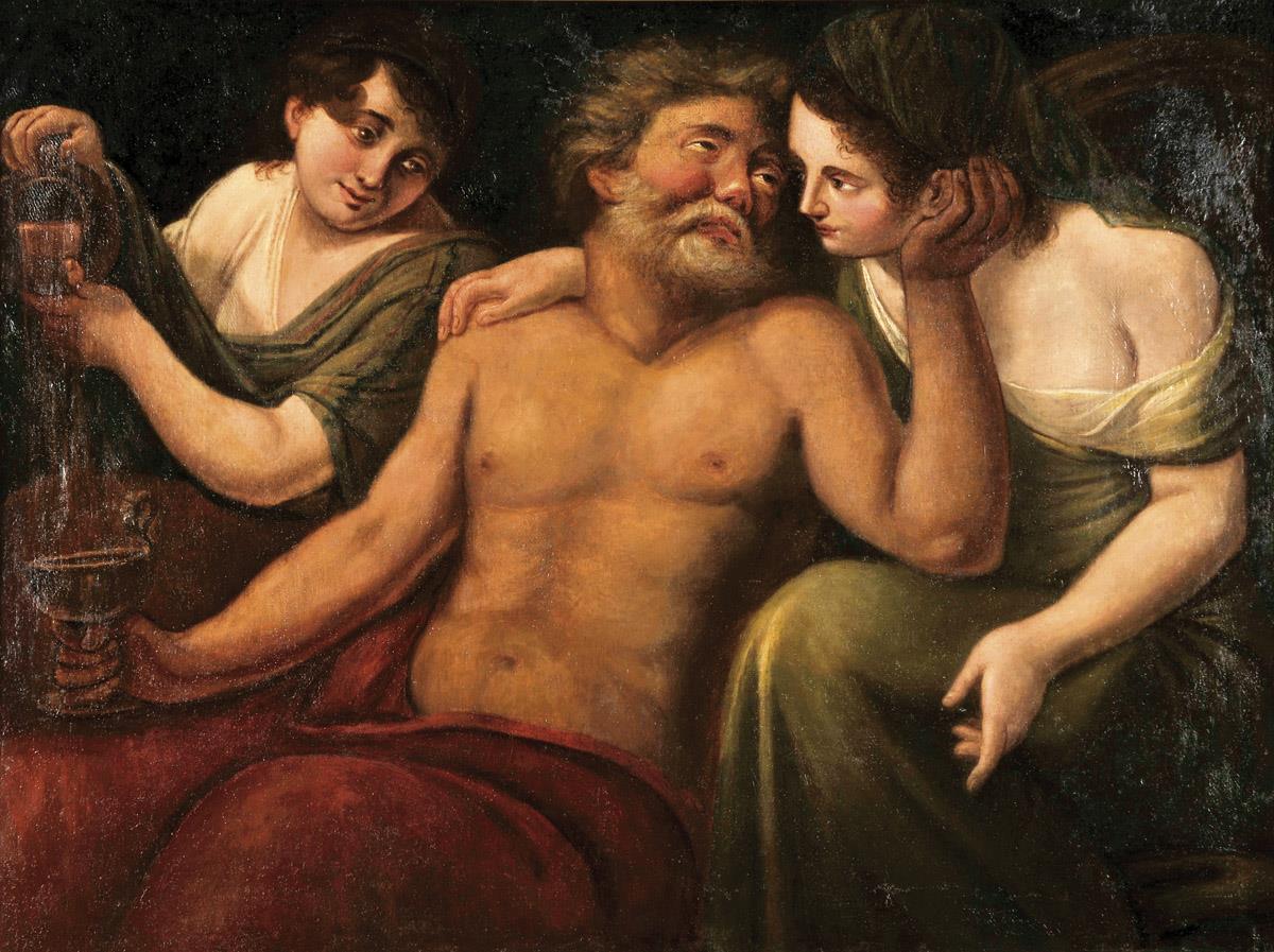 "Loth e as filhas" óleo sobre tela escola portuguesa séc. XVII/XVIII reentelado, restauros Dimensões (altura x comprimento x largura) - 88 x 116 cm