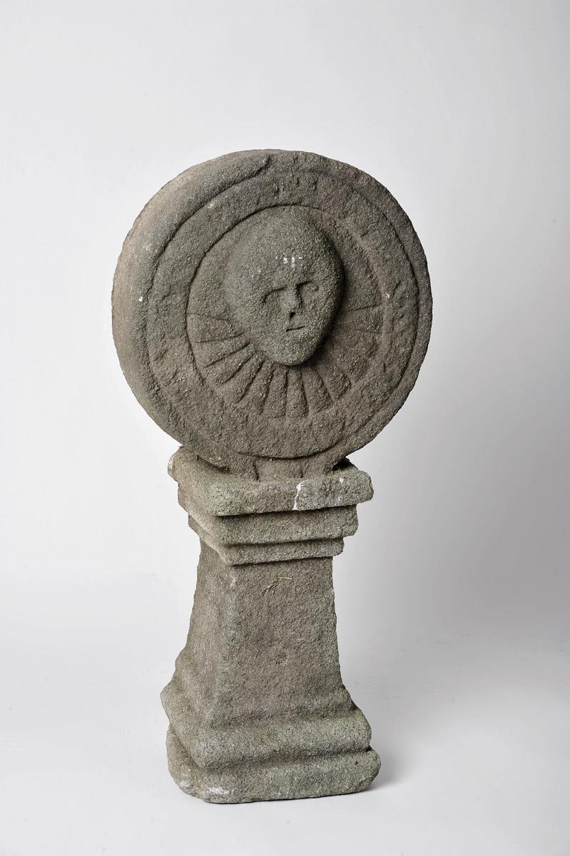 Relógio de sol granito esculpido "Mascarão" português séc. XVIII falta do ponteiro, defeitos Dimensões (altura x comprimento x largura) - 81 cm