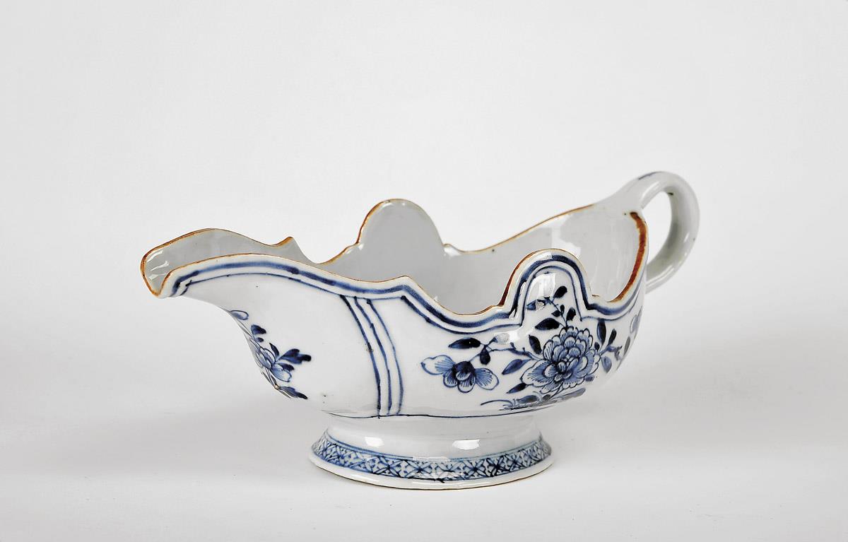 Molheira recortada porcelana chinesa de exportação decoração a azul "Flores e pássaros" reinado Qianlong (1736-1795) pequena esbeiçadela Dimensões (altura x comprimento x largura) - 10 x 24,5 x 10 cm