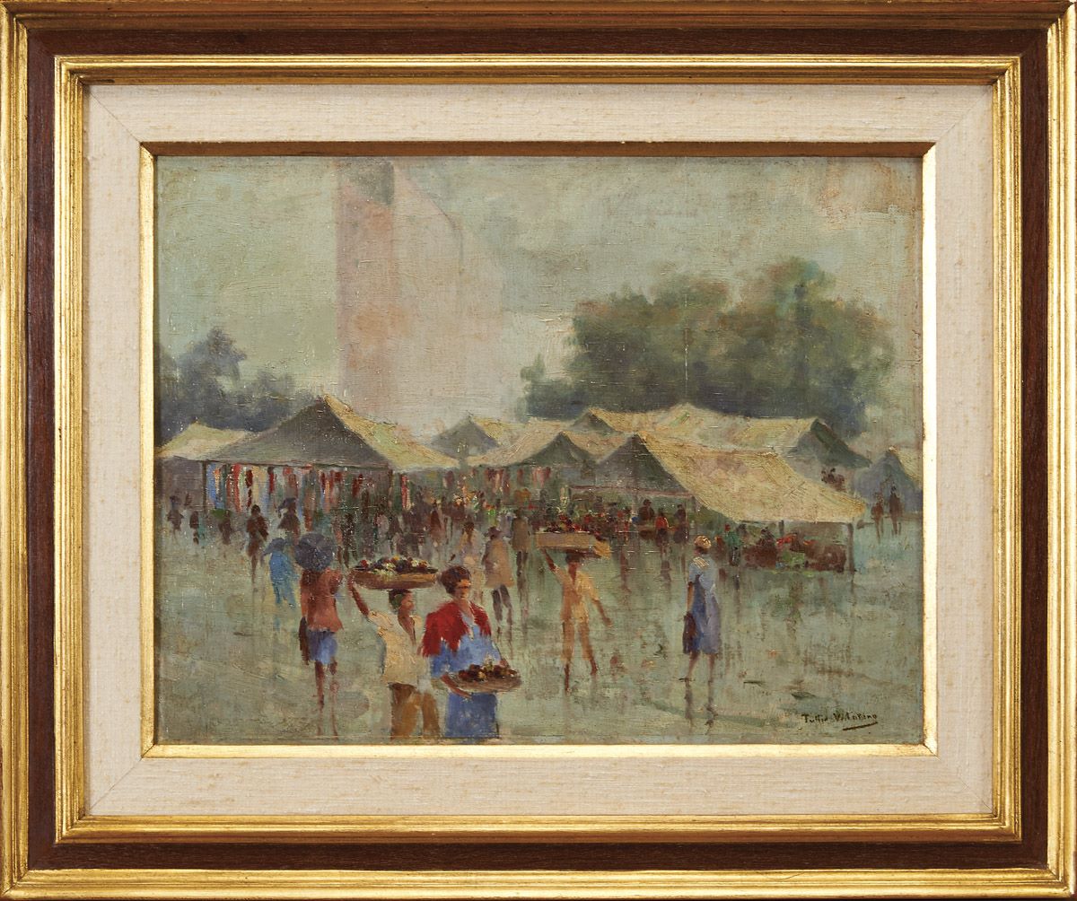 TÚLIO VICTORINO - 1906-1967 Mercado óleo sobre laminado de madeira assinado Dimensões (altura x comprimento x largura) - 29,5 x 38,5 cm
