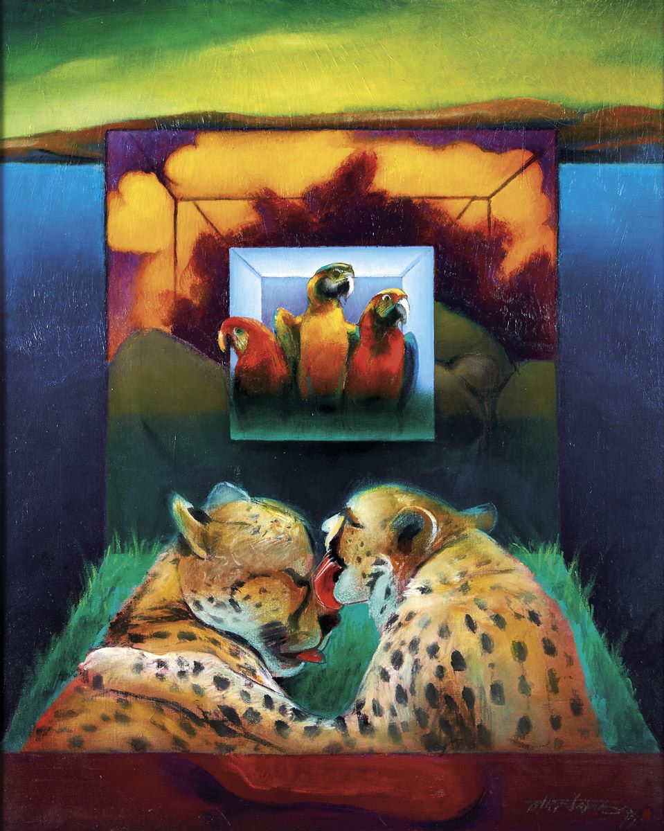 GIL TEIXEIRA LOPES - NASC. 1936 "Espaços de Vida" óleo sobre tela assinado e datado de 1994 Dimensões (altura x comprimento x largura) - 100 x 81 cm
