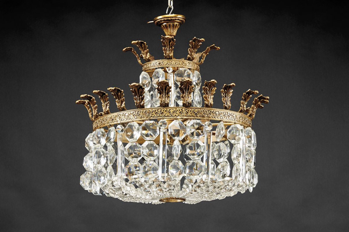 Par de candeeiros de tecto bronze relevado pingentes de vidro portugueses séc. XX (anos 60) pequenos defeitos Dimensões (altura x comprimento x largura) - 65 x 65 cm