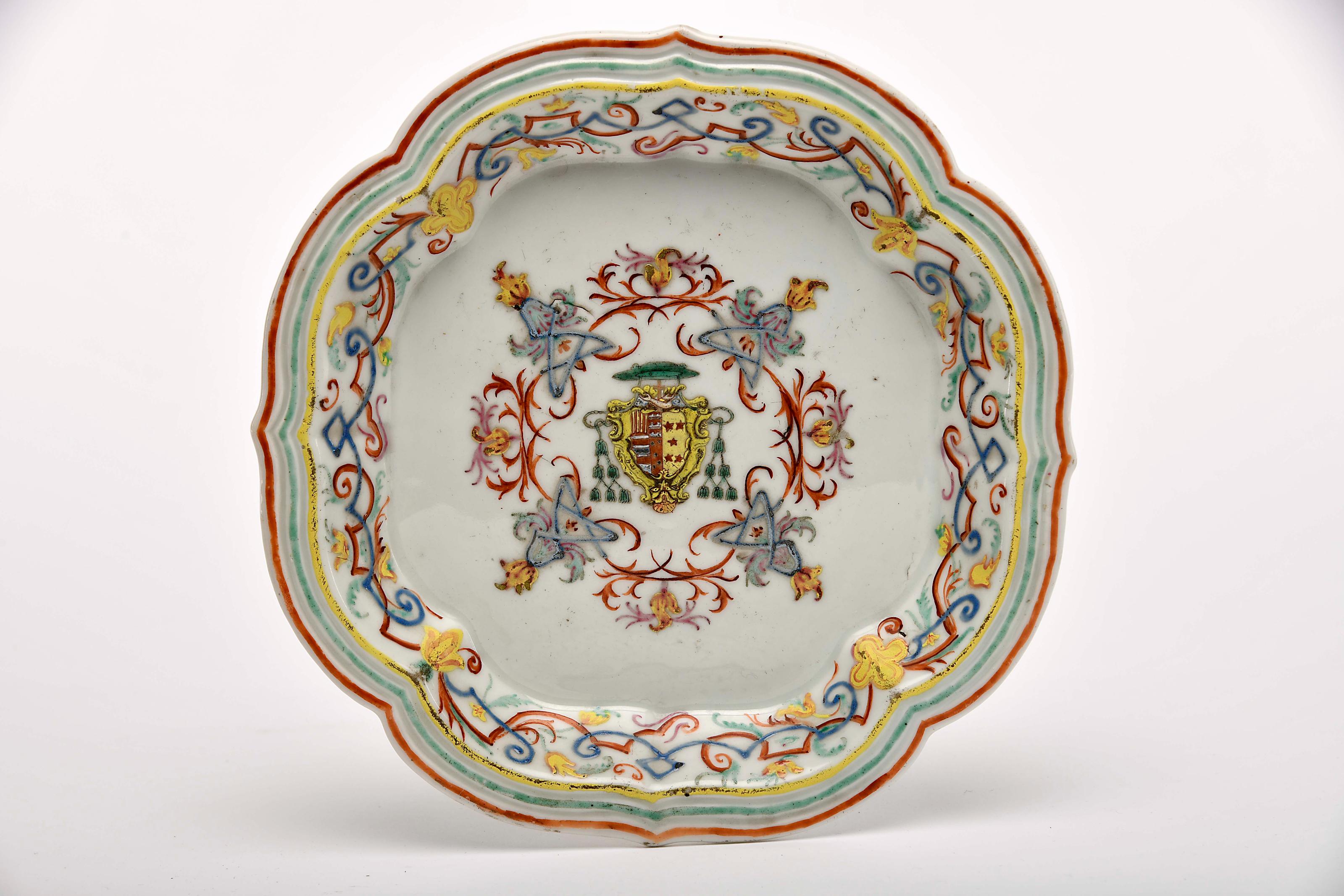 Covilhete polilobado porcelana Chinesa de exportação decoração policromada com armas de D. José Maria da Fonseca e Évora (1690-1752), Bispo do Porto - 4º serviço reinado Qianlong (1736-1795) pequenas esbeiçadelas, pequenas faltas no vidrado Dimensões (altura x comprimento x largura) - 3 x 25,5 cm Notas: vd. CASTRO, Nuno - "A Porcelana Chinesa ao Tempo do Império - Portugal / Brasil". Lisboa: ACD Editores, 2007, p. 135; SANTOS, A. Varela - "Portugal na Porcelana da China - 500 Anos de Comércio". Lisboa: Artemágica, volume II, 2008, pp. 608-615; e DIAS, Pedro - "Heráldica Portuguesa na Porcelana da China Qing". Lisboa: Fundação Macau, 2014, pp. 106-107.