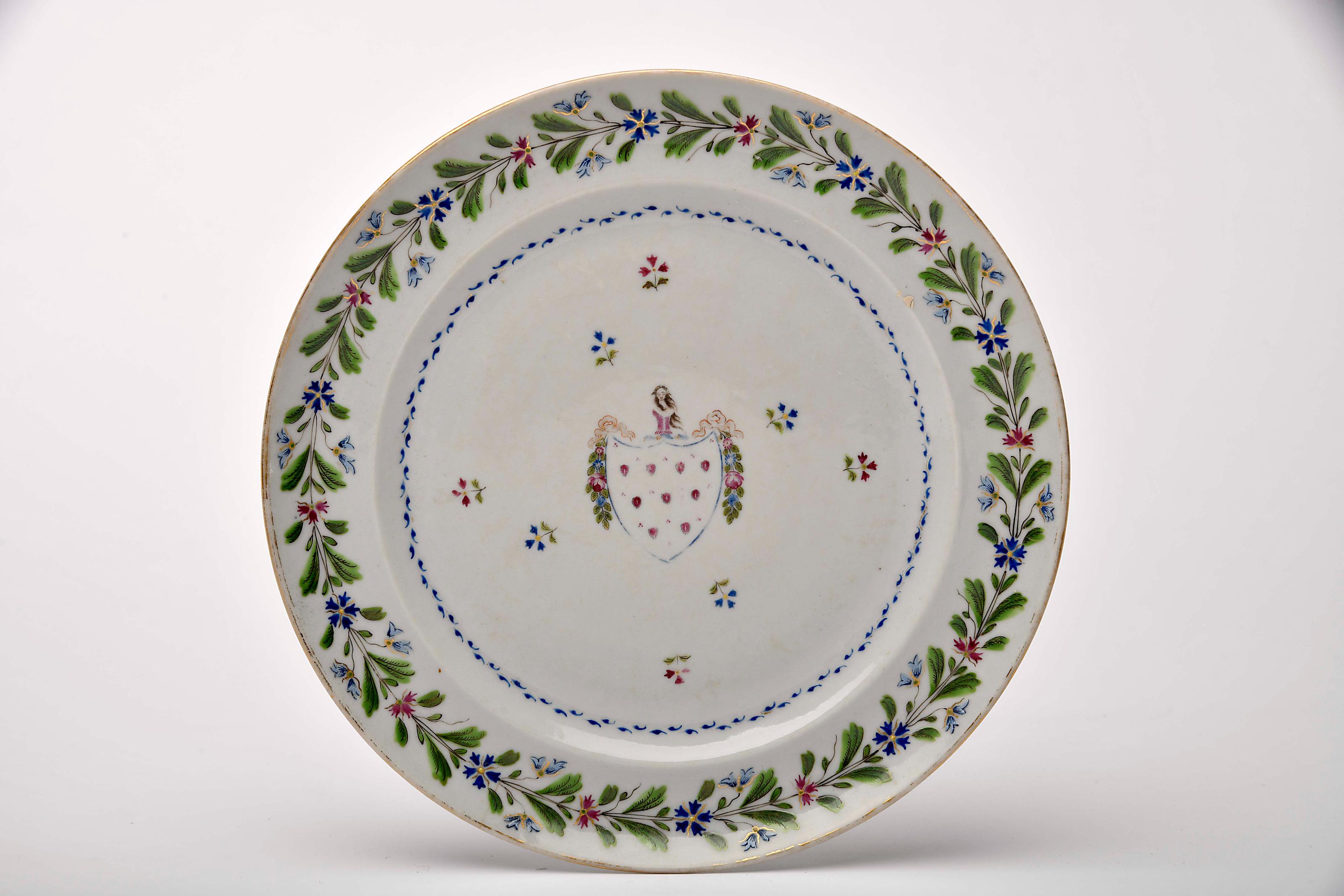 Prato porcelana Chinesa de exportação decoração policromada e dourada com armas de Bartolomeu Barreto (1784-1845) reinado Jiaqing (1796-1820) desgaste na decoração Dimensões (altura x comprimento x largura) - 25 cm Notas: vd. CASTRO, Nuno de - "A Porcelana Chinesa ao Tempo do Império - Portugal/Brasil". Lisboa: ACD Editores, 2007, p. 210; e DIAS, Pedro - "Heráldica Portuguesa na Porcelana da China Qing". Lisboa: Fundação Macau, 2014, pp. 286-287.