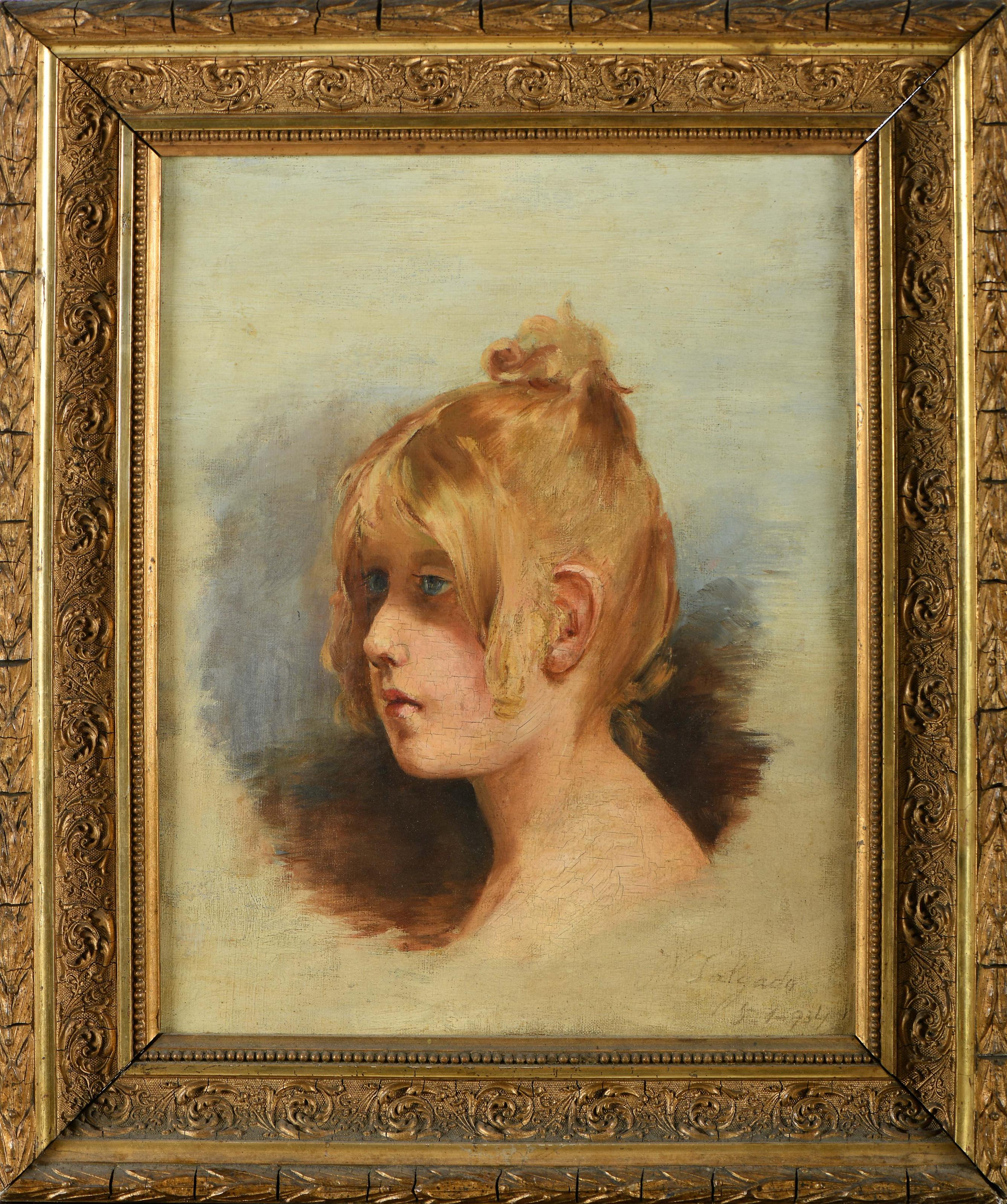 VELOSO SALGADO - 1864-1945 Retrato de menina óleo sobre tela restauros assinado e datado de 5-1-1934 Dimensões (altura x comprimento x largura) - 35,5 x 27,5 cm