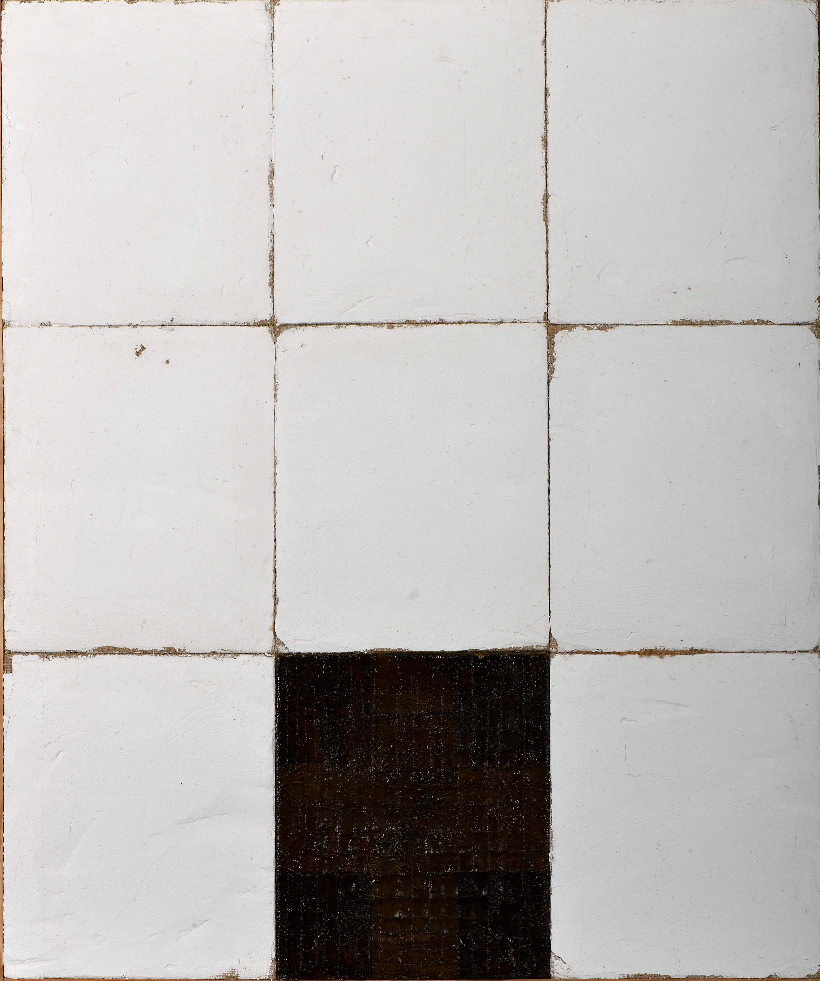 RUI MACEDO - NASC. 1975 "Casa de Devoção" técnica mista sobre serapilheira pequenas faltas na camada pictórica assinada e datada de 1996 no verso Dimensões (altura x comprimento x largura) - 90 x 75 cm