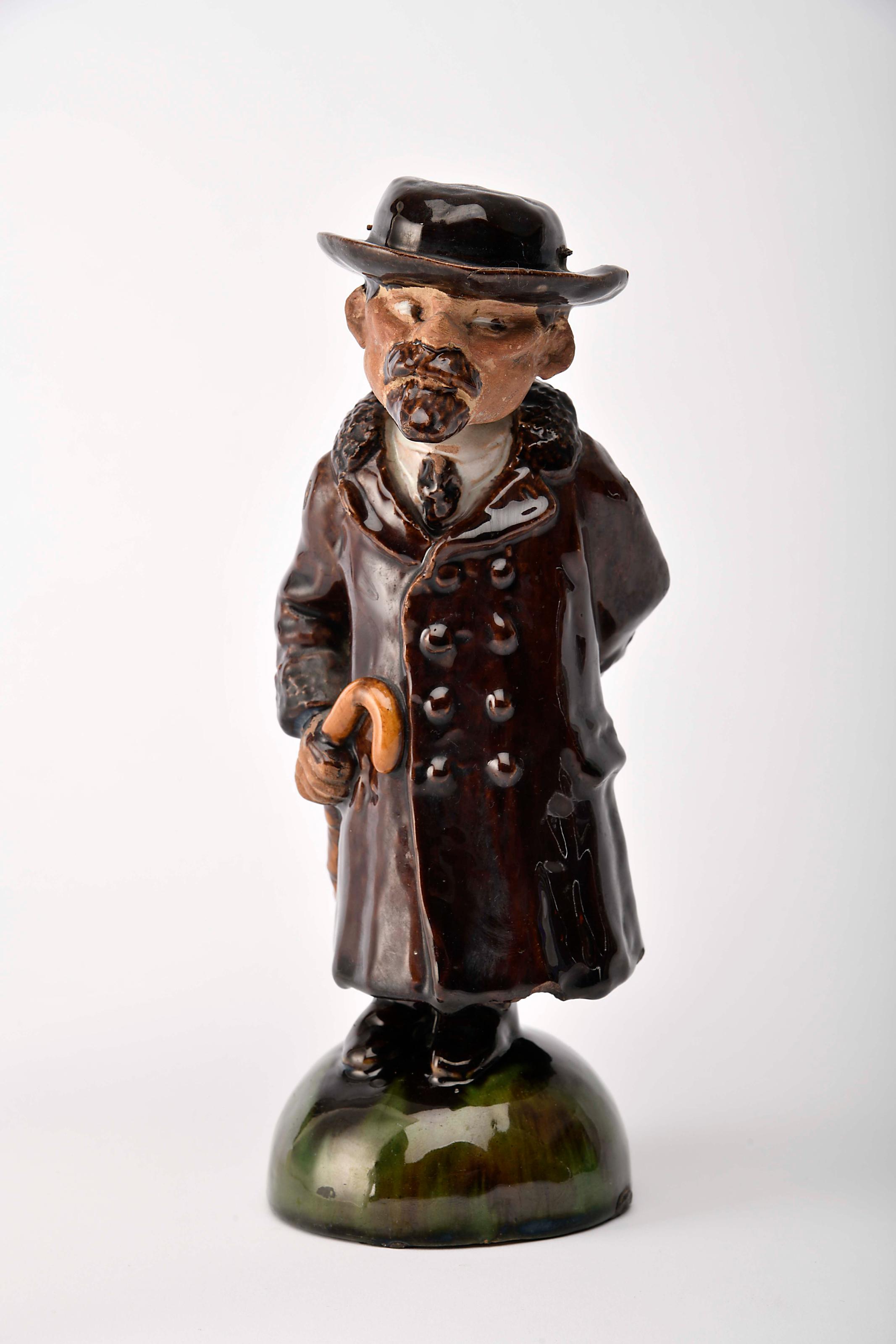 Figura de movimento - Polícia secreta faiança das Caldas parcialmente não vidrada decoração policromada restauro na aba do chapéu, ínfimas esbeiçadelas, pequenas faltas no vidrado modelo de Rafael Bordallo Pinheiro (1884-1905), marca da Fábrica de Faianças das Caldas da Rainha Rainha sob direcção artística de Rafael Bordallo Pinheiro (1884-1908), datada de 1901 Dimensões (altura x comprimento x largura) - 23,5 cm Notas: exemplar idêntico integra a colecção do Museu de Cerâmica das Caldas da Rainha - Inv. nº 1004 - vd. “Rafael Bordalo Pinheiro e a Fábrica de Faianças das Caldas da Rainha (1884-1905)”. Caldas da Rainha: Instituto Português de Museus / Museu de Cerâmica, 2005, p. 175 nº 114.