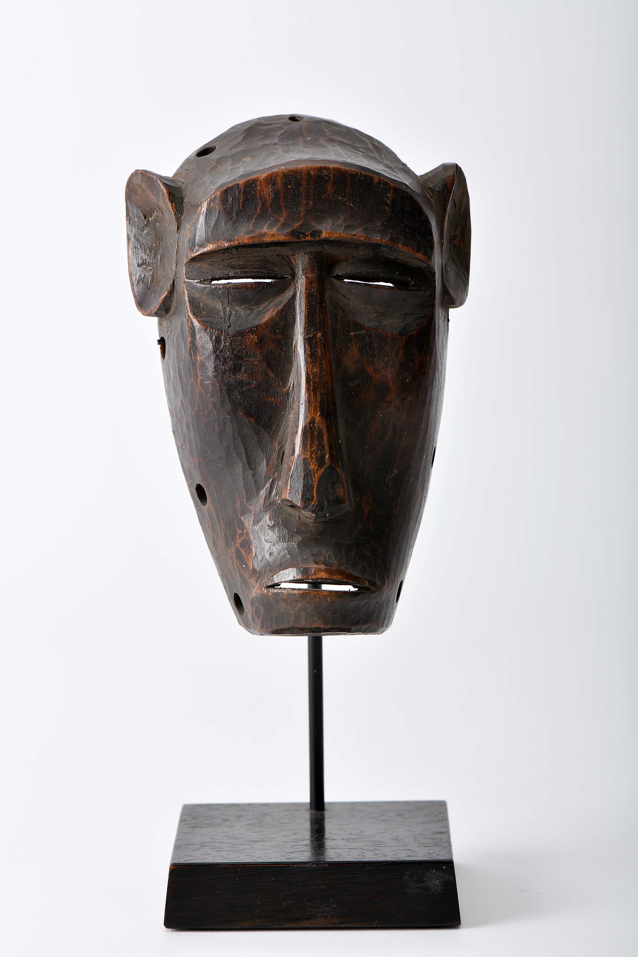 Máscara "Macaco" escultura em madeira Moçambicana - Makonde séc. XIX (2ª metade) suporte moderno Dimensões (altura x comprimento x largura) - 15,5 cm Notas: pequeno desgaste