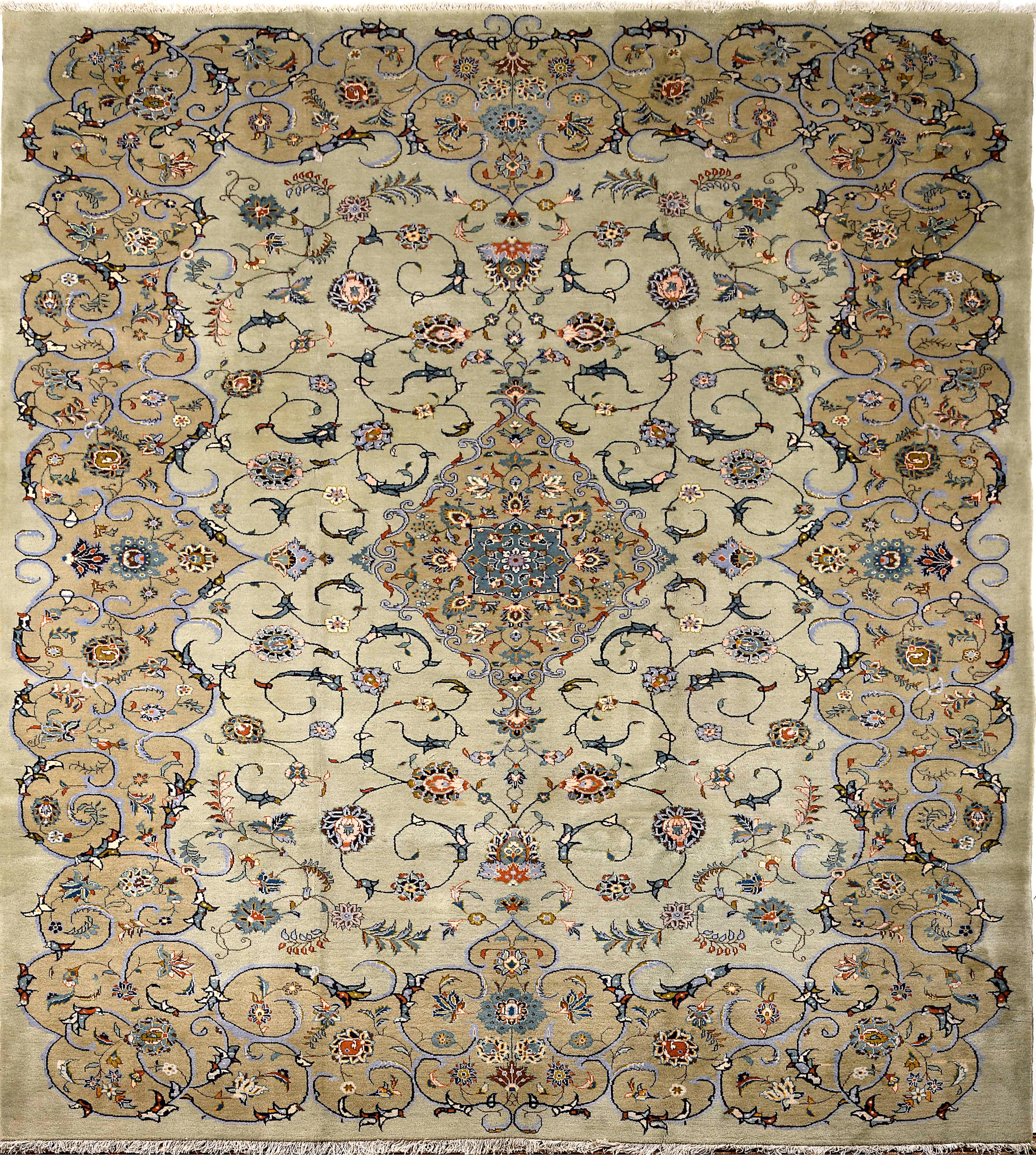 Tapete Kashan fio de lã decoração policromada "Motivos vegetalistas" com medalhão central Iraniano séc. XX (4º quartel) pequenos defeitos, sinais de uso Dimensões (altura x comprimento x largura) - 341 x 248 cm