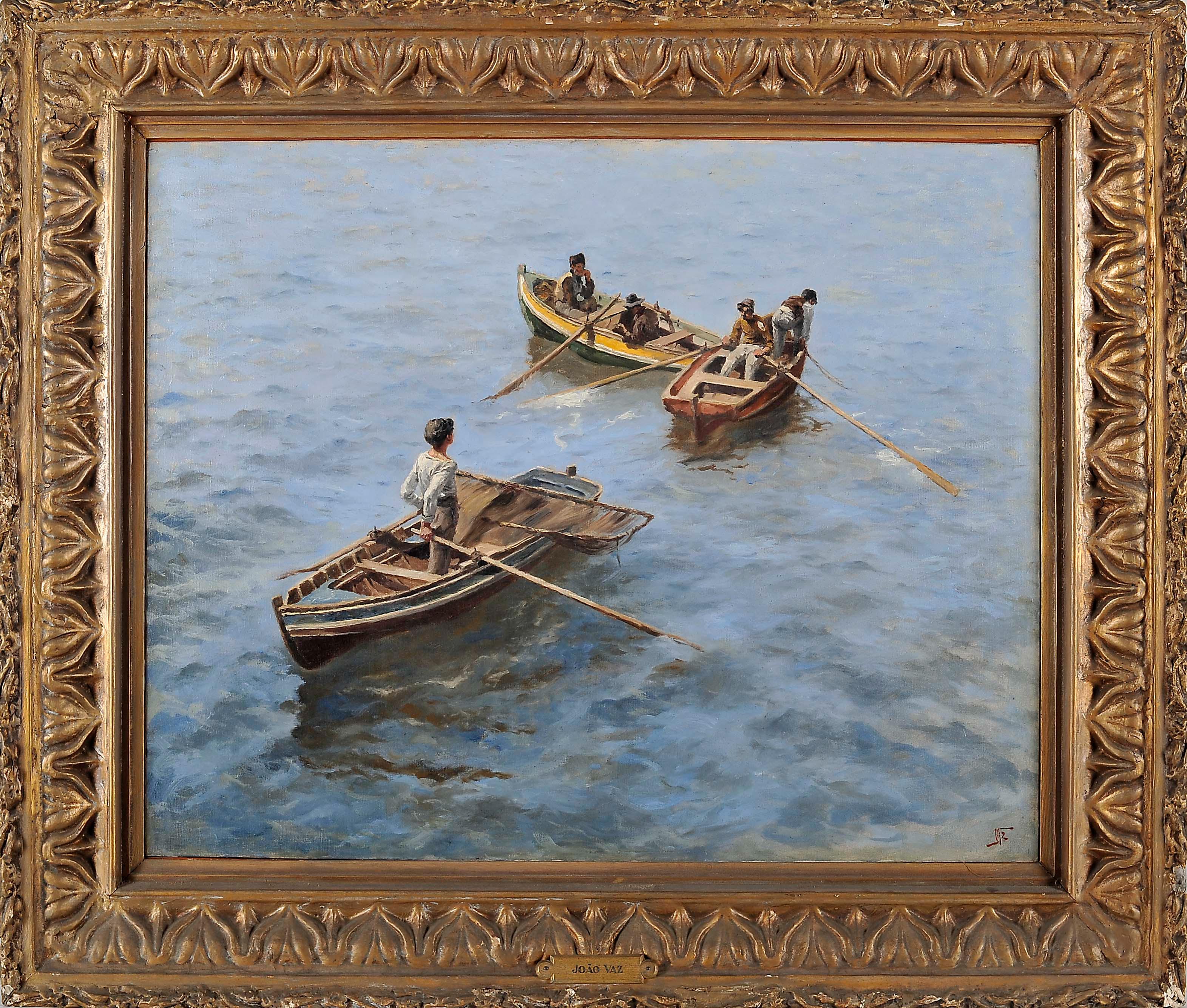 JOÃO VAZ - 1859-1931 "Funchal" óleo sobre tela assinado Dimensões (altura x comprimento x largura) - 73,5 x 93,5 cm Notas: integrou as exposições: 1. "João Vaz - 1859-1931 - Um pintor do Naturalismo", realizada na Casa-Museu Dr. Anastácio Gonçalves, Lisboa, encontrando-se reproduzido no respectivo catálogo, onde se data a obra entre os anos 1920-1927, período em que o autor apresenta obras de temática madeirense - vd. "João Vaz - 1859-1931 - Um pintor do Naturalismo". Lisboa: Instituto Português de Museus, 2005, p. 162, nº 146; 2; e a exposição "A Beleza da Água. O Museu de Marinha e João Vaz", realizada no Museu da Marinha de 21 de Julho a 31 de Dezembro de 2023 - vd. https://www.marinha.pt/pt/media-center/Noticias/Paginas/A-fascinante-conexao-entre-a-arte-maritima-e-a-genialidade-de-Joao-Vaz-em-destaque-no-Museu-de-Marinha.aspx consultado a 5-11-2025 às 10:28.