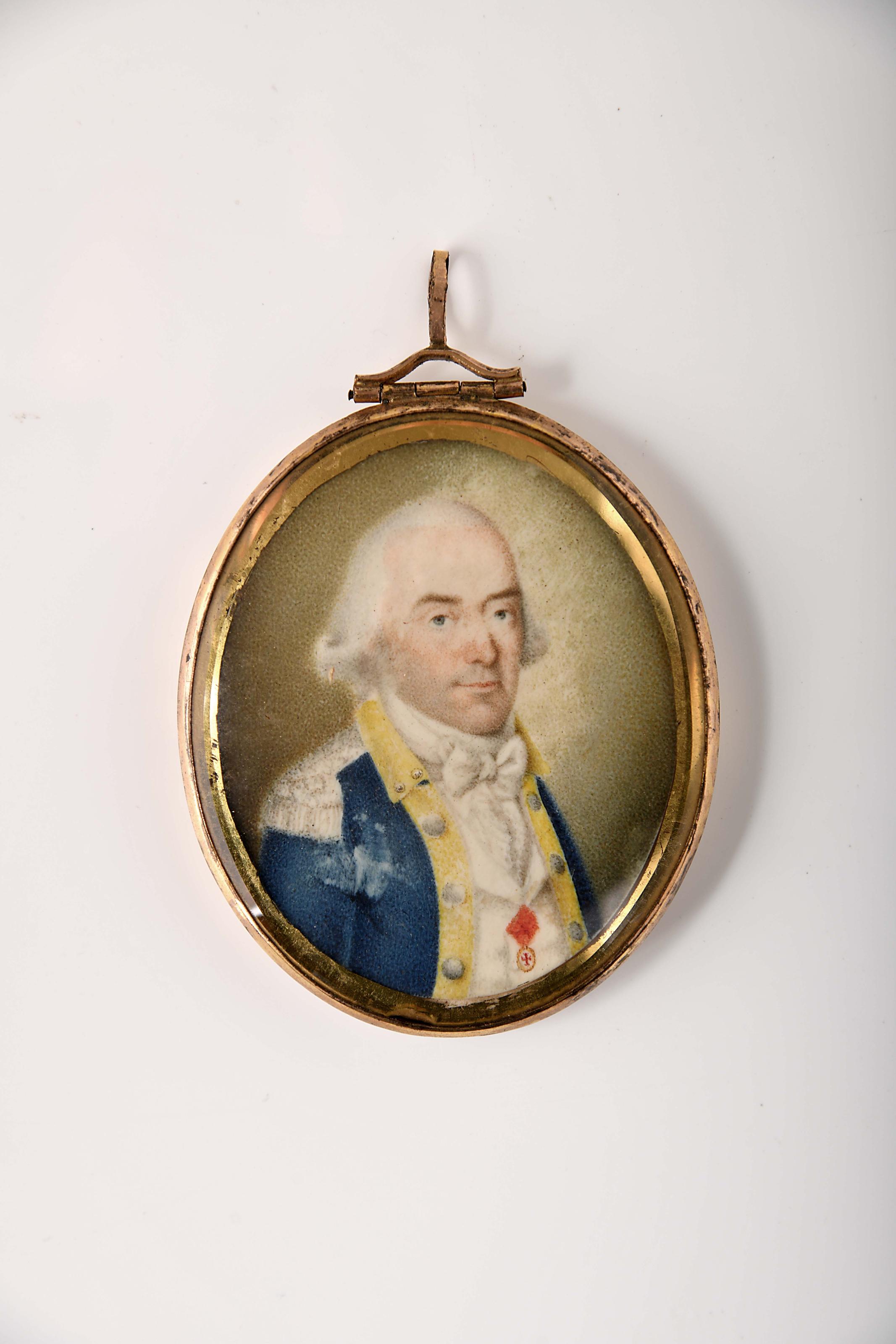 Pendente "Retrato de Cavaleiro com uniforme militar português e cruz da Ordem de Cristo" miniatura sobre marfim verso com decoração dourada e pintada sob vidro, moldura em metal dourado Português séc. XVIII/XIX defeitos na decoração do verso, outros pequenos defeitos Dimensões (altura x comprimento x largura) - 9 x 6 cm Notas: a) Este lote está sujeito às restrições CITES de exportação/importação e encontra-se devidamente certificado: nº 26PTLX00775C;b) É actualmente proibida por diversos países a importação de bens que incorporem materiais de espécies da fauna e flora selvagens protegidas, incluindo, entre outros, marfim, coral e tartaruga;c) Em Portugal, em conformidade com a prevista transposição para a legislação nacional das mais recentes orientações da UE relativas ao comércio de marfim, está suspensa a emissão de certificados de reexportação para países que não integrem a UE;d) Neste contexto, aconselham-se os seus potenciais compradores a informarem-se previamente sobre a legislação do seu país e restrições internacionais aplicáveis.