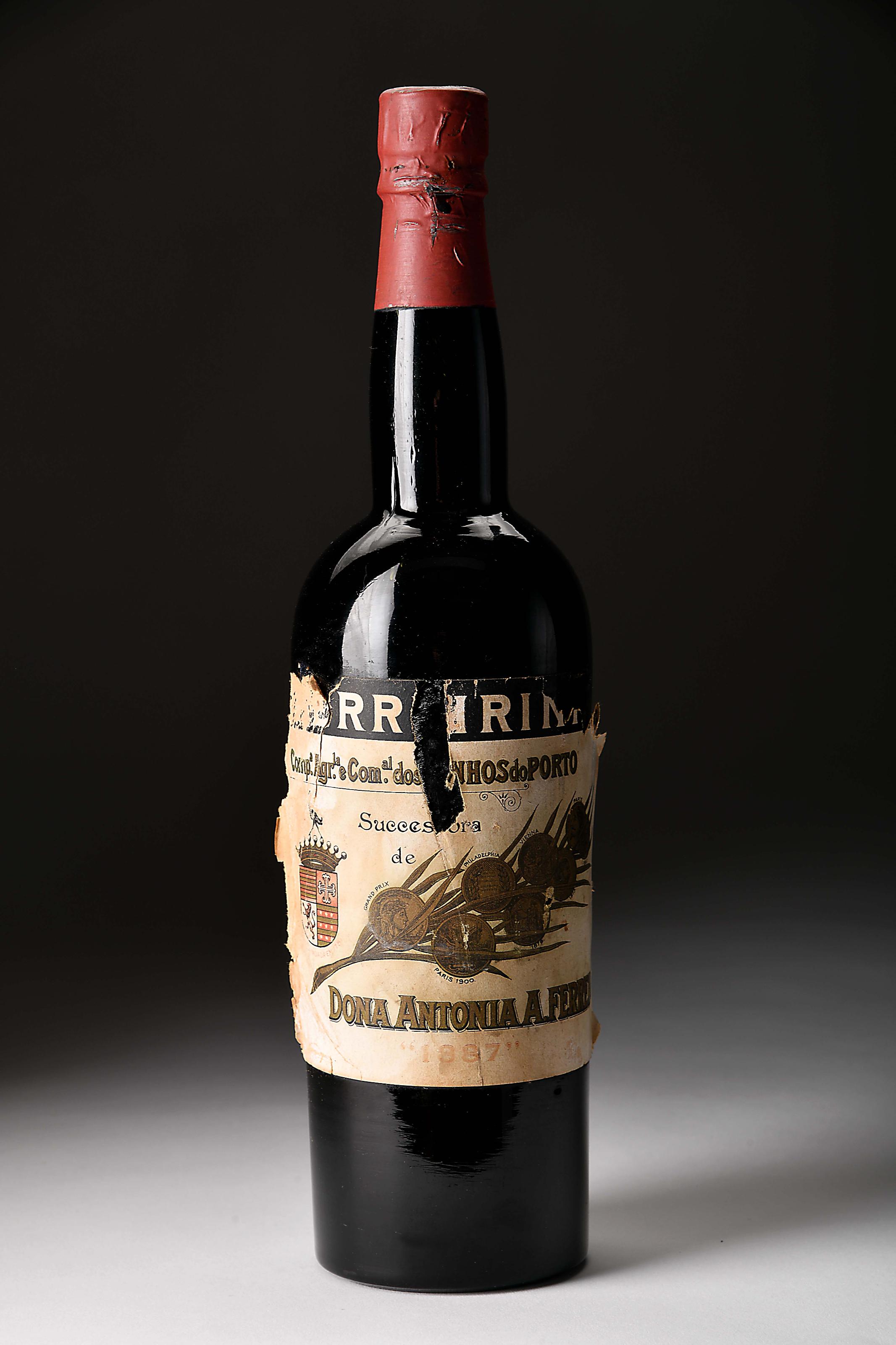 Ferreirinha Comp.ª Agr.la e Com.al dos Vinhos do Porto Successora de Dona Antónia A. Ferreira 1887 Porto cápsula original de estanho; rótulo danificado; cápsula com marca do produtor bem legível, Nível: 1cm abaixo da base do gargalo