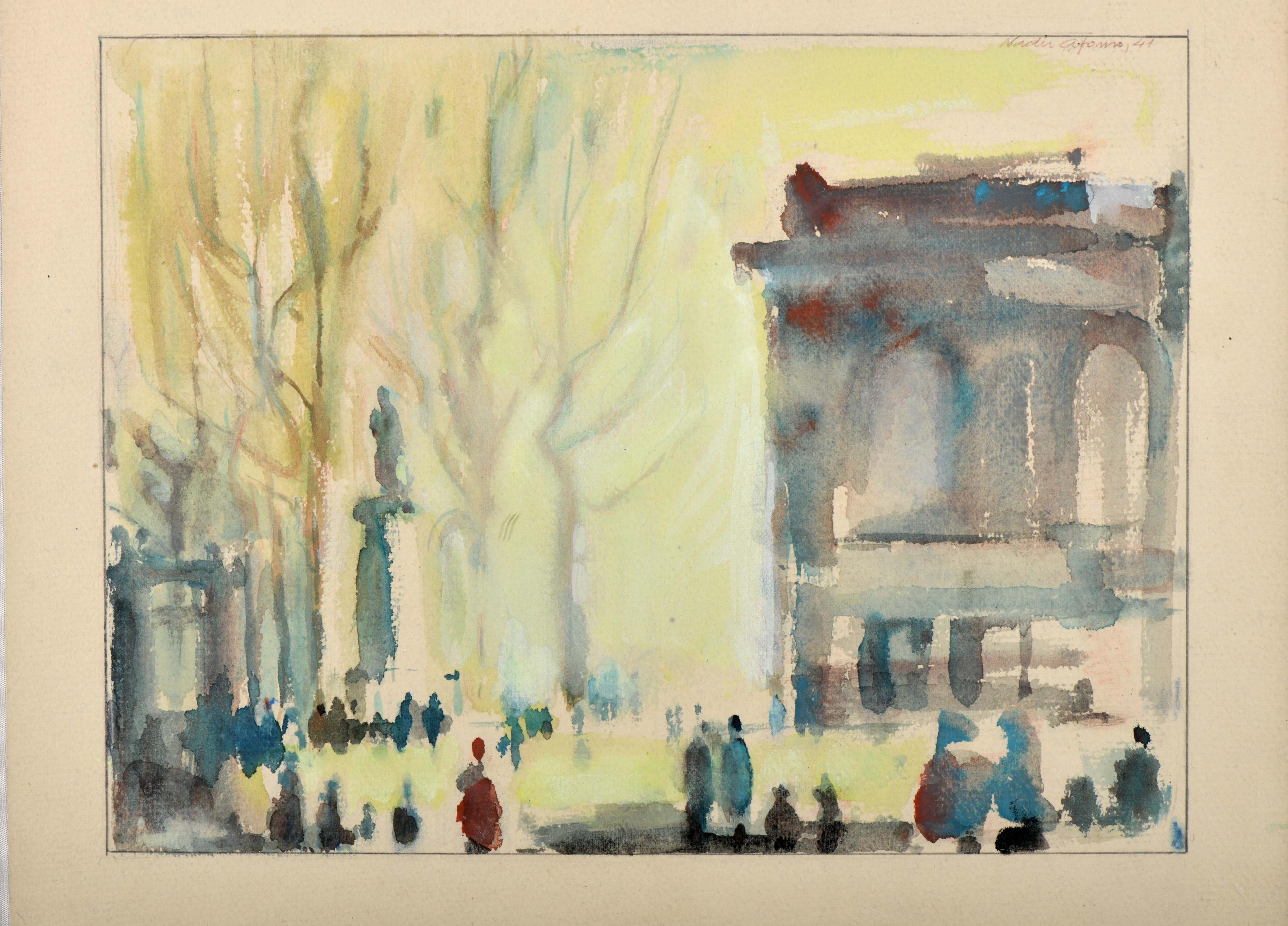 NADIR AFONSO - 1920-2013 "Praça da Batalha" (estudo) aguarela sobre papel assinada e datada de 1941 Dimensões (altura x comprimento x largura) - 25 x 32 cm Notas: obra reproduzida em "O Porto de Nadir". Lisboa: ACD-Editores, 2000, pp. 42-43, nº 18.