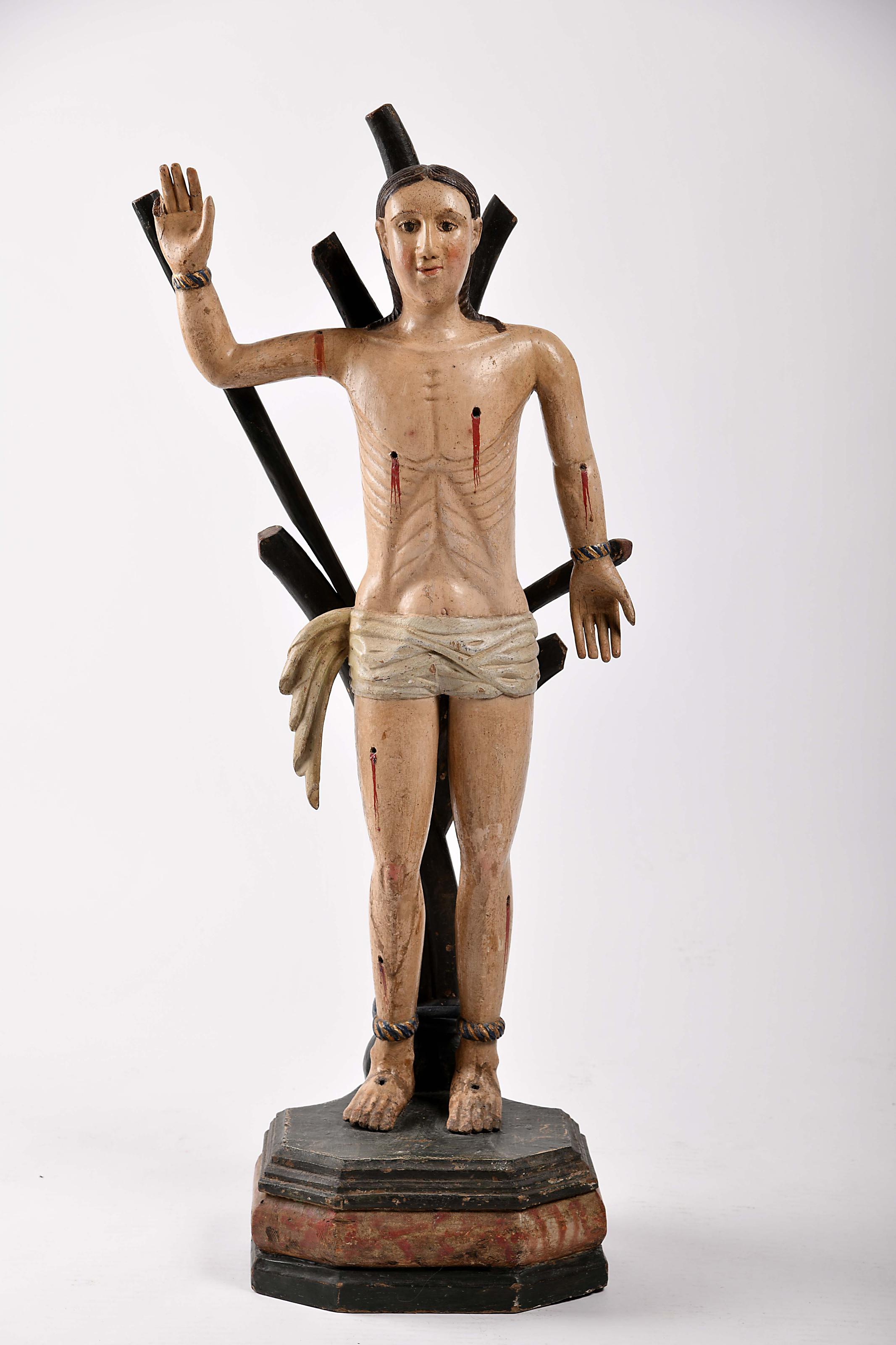 São Sebastião escultura em madeira policromada Portuguesa séc. XVII/XVIII falta de um dedo, restauros na policromia, outros pequenos defeitos Dimensões (altura x comprimento x largura) - 108,5 cm