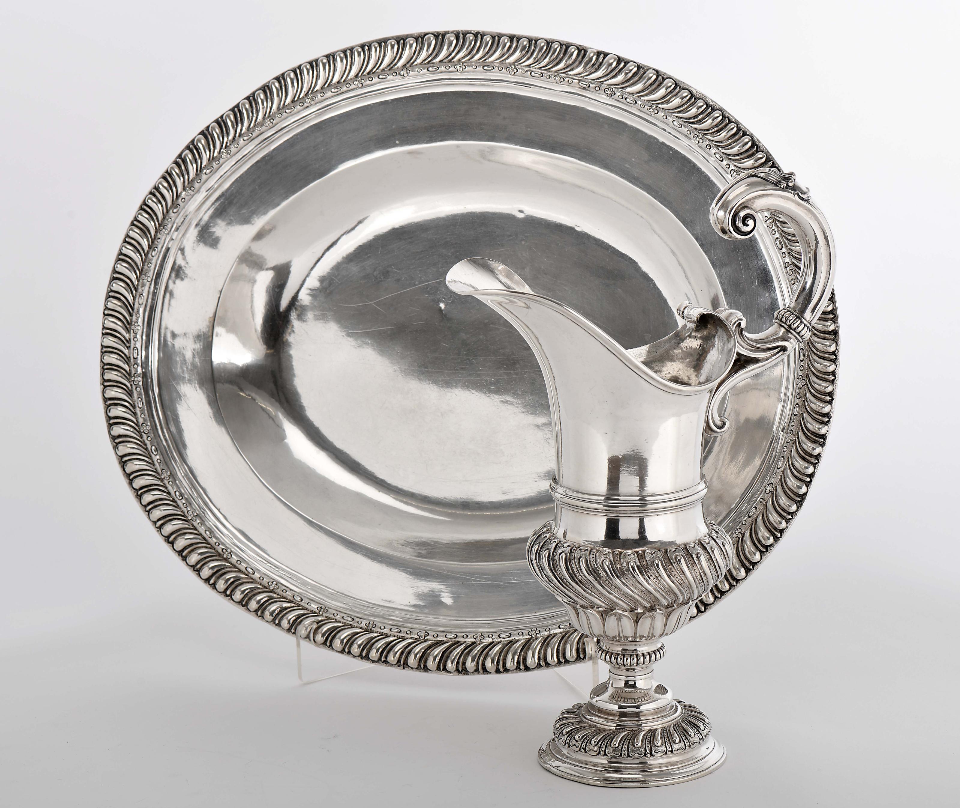 Lavanda e gomil de asa perdida D. João V (1706-1750) prata e prata de 854/1000 faixas gomadas e espiraladas Portugueses pequenas amolgadelas, lavanda com pequenos restauros e fissuras lavanda sem marcas, ao abrigo do Decreto-Lei nº 120/2017, de 15 de Setembro - art. 2º, nº 2, alínea c), gomil com marca de ensaiador de Lisboa (1694-1723) e marca de ourives atribuível a Vicente da Silva Dimensões (altura x comprimento x largura) - (lavanda) 49 x 41,5 cm; (gomil) 35 cm; Peso - 3.269 g. Notas: vd. D'OREY, Leonor - "Ourivesaria". Lisboa: Fundação Ricardo Espírito Santo Silva, 1998, pp. 152-154.vd. ALMEIDA, Fernando Moitinho de; CARLOS, Rita - "Inventário de Marcas de Pratas Portuguesas e Brasileiras - Século XV a 1887". Lisboa: IN-CM, 2018, L-24 e L-622.