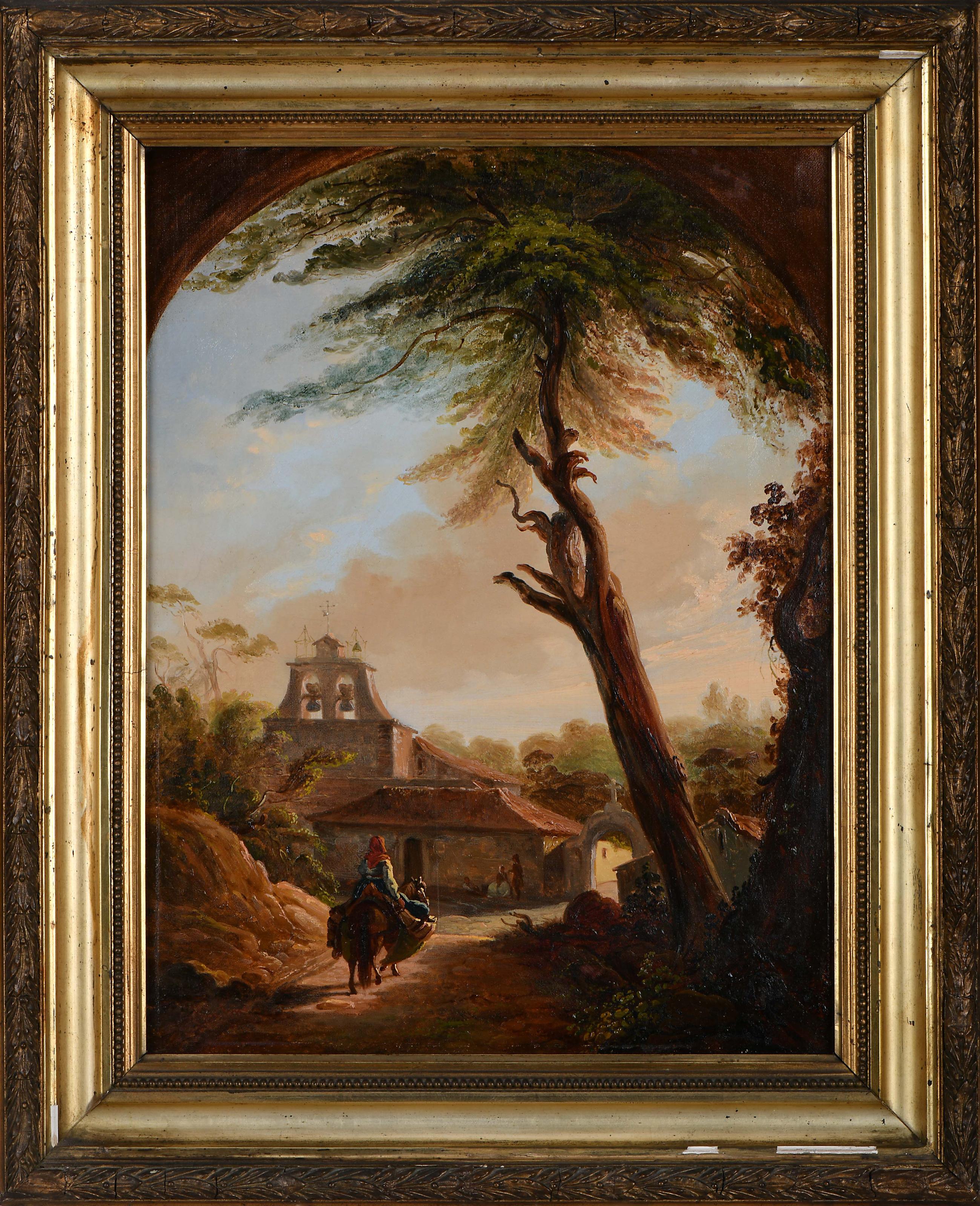 JOÃO CRISTINO DA SILVA - 1829-1877 "Igreja do convento do Buçaco" óleo sobre tela assinado Dimensões (altura x comprimento x largura) - 43 x 32,5 cm Notas: gravura do Autor, com o mesmo tema, encontra-se reproduzida em SILVEIRA, Maria de Aires -" João Cristino da Silva, 1829-1877". Lisboa: Instituto Português de Museus, 2000, p.122, nº 47 onde se encontra atribuída a datação de cerca de 1860.